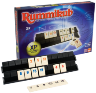 Rummikub XP is een nieuwe uitvoering van het overbekende spel Rummikub! Met deze versie kun je niet tot 4, maar tot 6 spelers tegelijk spelen. Dit zorgt voor nog meer uitdaging, complexiteit en speelplezier! Maak mooie cijferreeksen met de gekleurde cijfers op je plankje. Wie legt de slimste combinaties? Ben jij degene die het eerst alle cijfers op tafel heeft liggen? Een spel dat inzicht, durf en tactiek combineert.